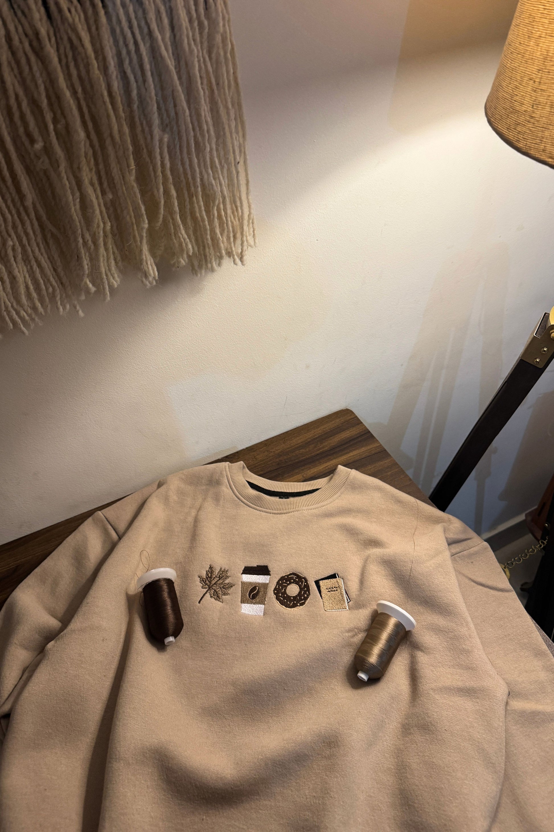A cozy nod to the season of falling leaves and warm coffee. The Autumn Oversized Sweatshirt captures the perfect autumn vibe with its minimal embroidered motifs — a maple leaf, coffee cup, donut, and book — stitched with precision for subtle yet charming detail. Designed to keep you warm and effortlessly stylish when the air turns crisp.