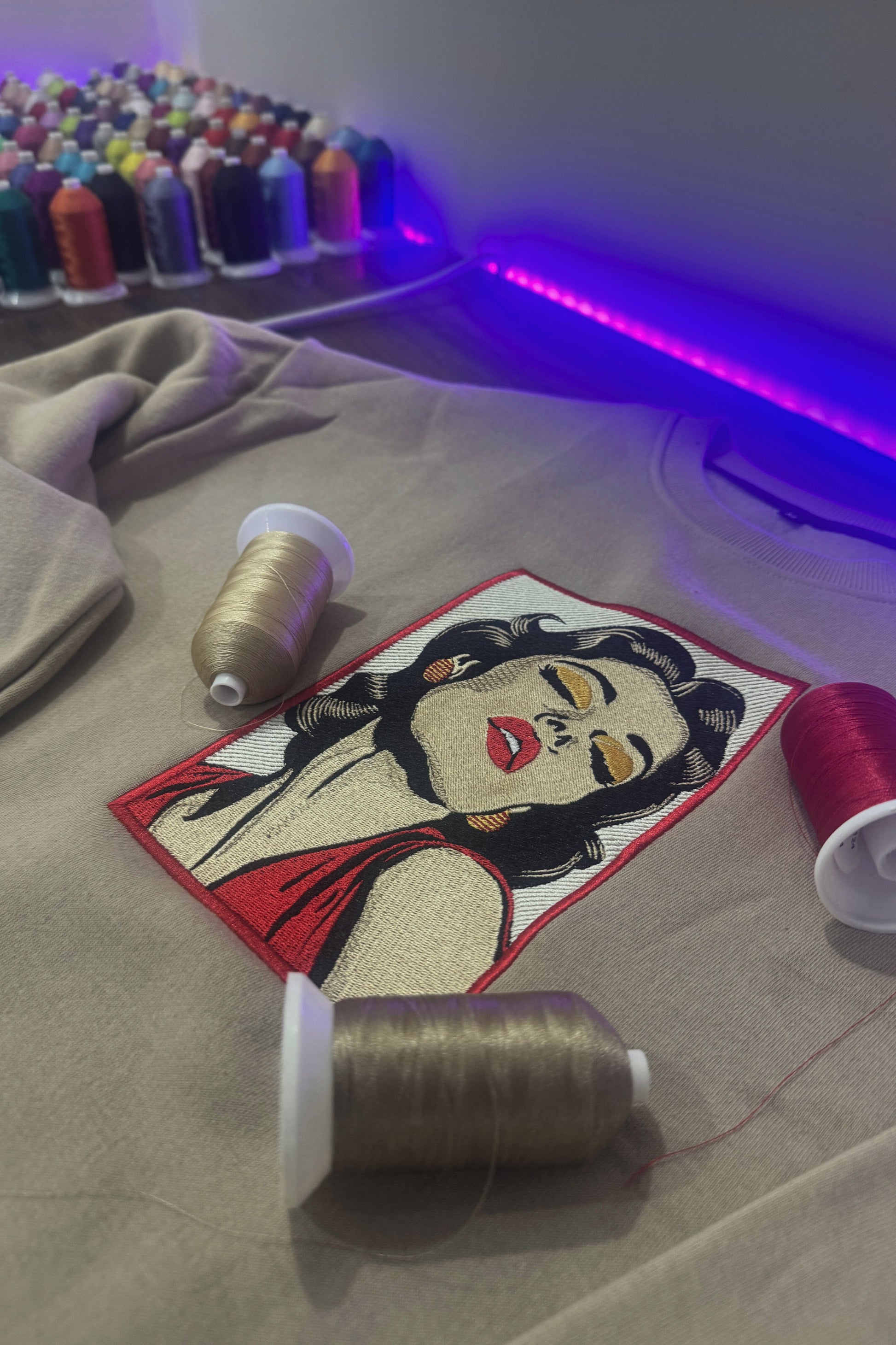 • Detailed Embroidery — autumn-inspired icons with clean, high-density stitching