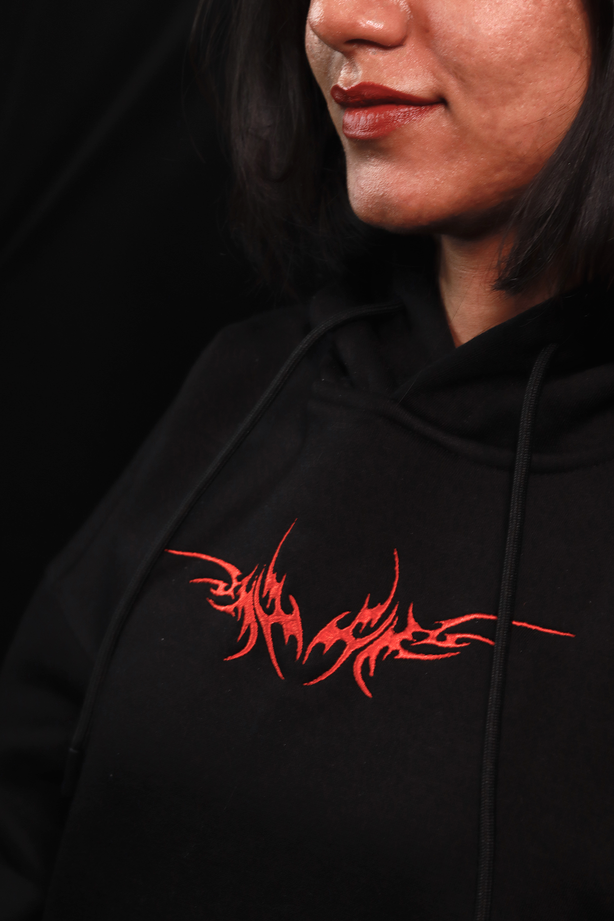 A bold expression of untamed energy. The Soul Of The Wild Oversized Hoodie features striking tribal-inspired red embroidery on the chest and a powerful signature back graphic, bringing attitude and streetwear luxury together. Designed for those who move with freedom, rebellion, and raw individuality.
